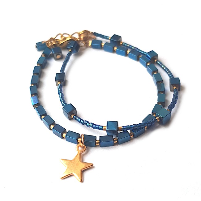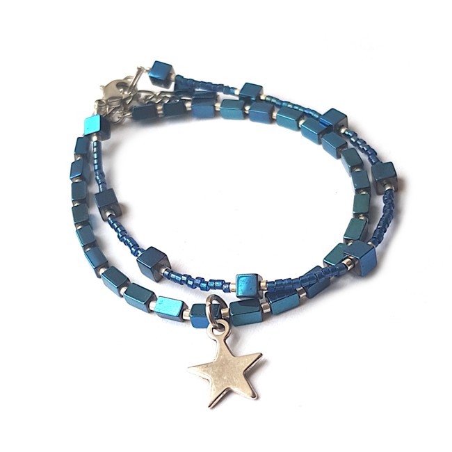 - een armband met rechthoekige kralen van halfedelsteen (5x3 mm) en ster van nikkelvrij metaal.
