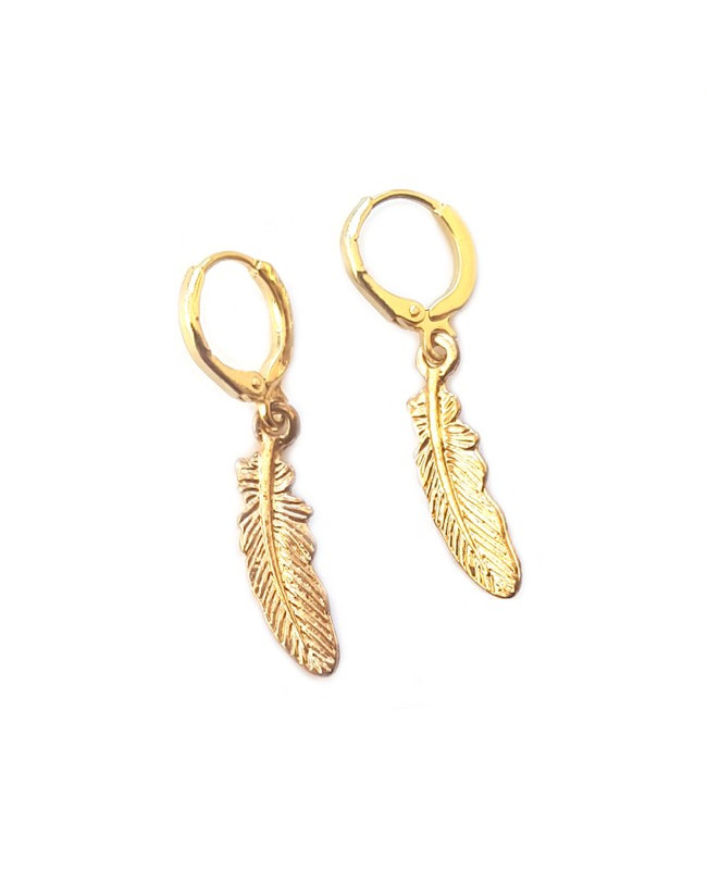 Handgemaakte oorbellen van DQ (hoge kwaliteit) metaal. Fijn maar toch opvallend. Aan de kleine oorringen (12mm) hangt een goudkleurig veertje. Al erg leuk om solo te dragen maar ook mooi in combinatie met andere oorbellen.
